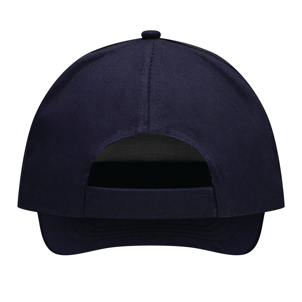 5-Panel-Cap FAVOURITE: verstärktes Frontsegment, 2 gestickte Luftlöcher, Knopf, größenverstellbarer Klettverschluss am Hinterkopf