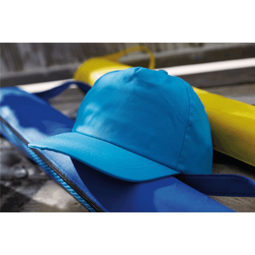 5-Panel-Cap FAVOURITE: verstärktes Frontsegment, 2 gestickte Luftlöcher, Knopf, größenverstellbarer Klettverschluss am Hinterkopf