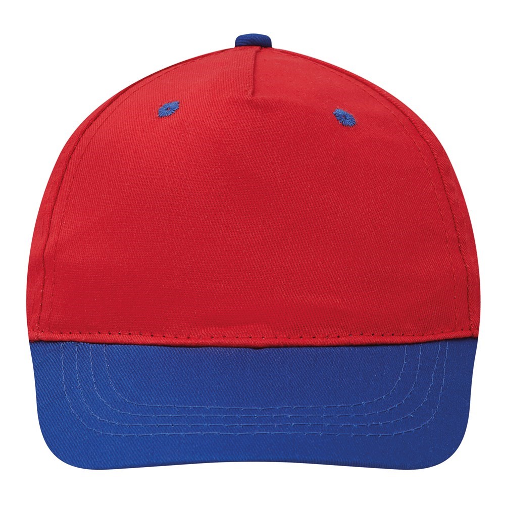 5-Panel-Cap für Kinder CALIMERO: mit farblich abgesetztem Schirm, verstärktes Frontsegment, 6 gestickte Luftlöcher, Knopf, größenverstellbarer Klettverschluss am Hinterkopf
