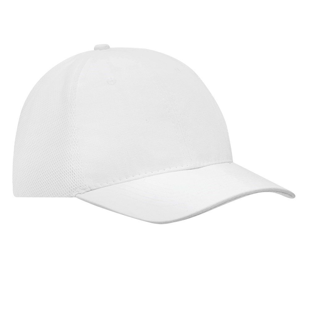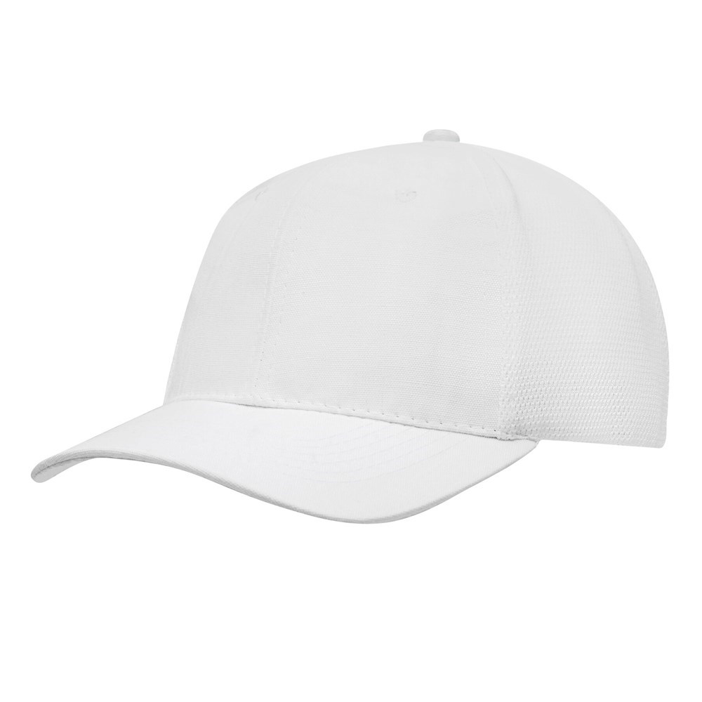 6-Panel-Cap PITCHER: verstärkte Frontsegmente in Canvas-Optik, Knopf, übrige Segmente mit Netzstoff, 2 gestickte Luftlöcher, größenverstellbarer Klettverschluss am Hinterkopf