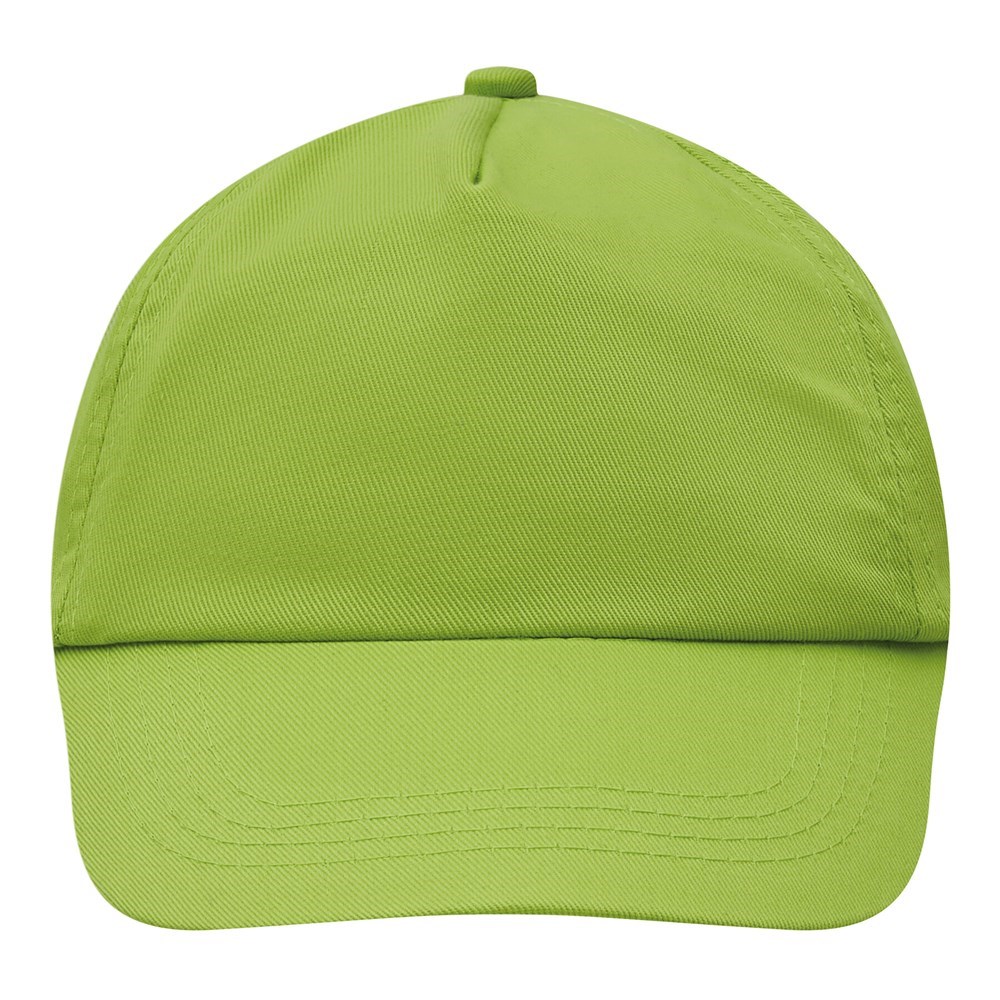 5-Panel-Cap für Kinder KIDDY WEAR: verstärktes Frontsegment, 2 gestickte Luftlöcher, Knopf, größenverstellbarer Klettverschluss am Hinterkopf