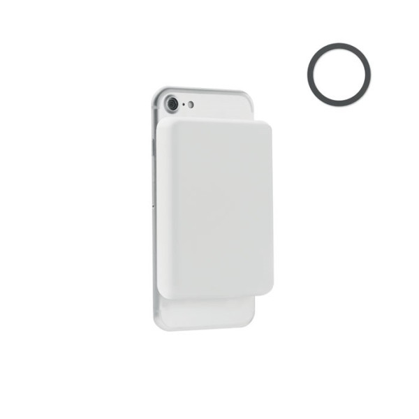 Magnetische Powerbank 5000 mAh mit kabellosem Ladegerät 10 W. Ausgang: DC 9V/1,1A (18W), ideal zum schnellen Aufladen. Kompatibel mit iPhone® 12 und neueren Modellen. Inkl. magnetischen Metallring zur Unterstützung anderer nicht-magnetischer, wireless aufladbarer Telefone. Eingang/Ausgang: Typ-C. PD (Power Delivery Ausgang), der auch das Aufladen der neuesten Laptops ermöglicht.