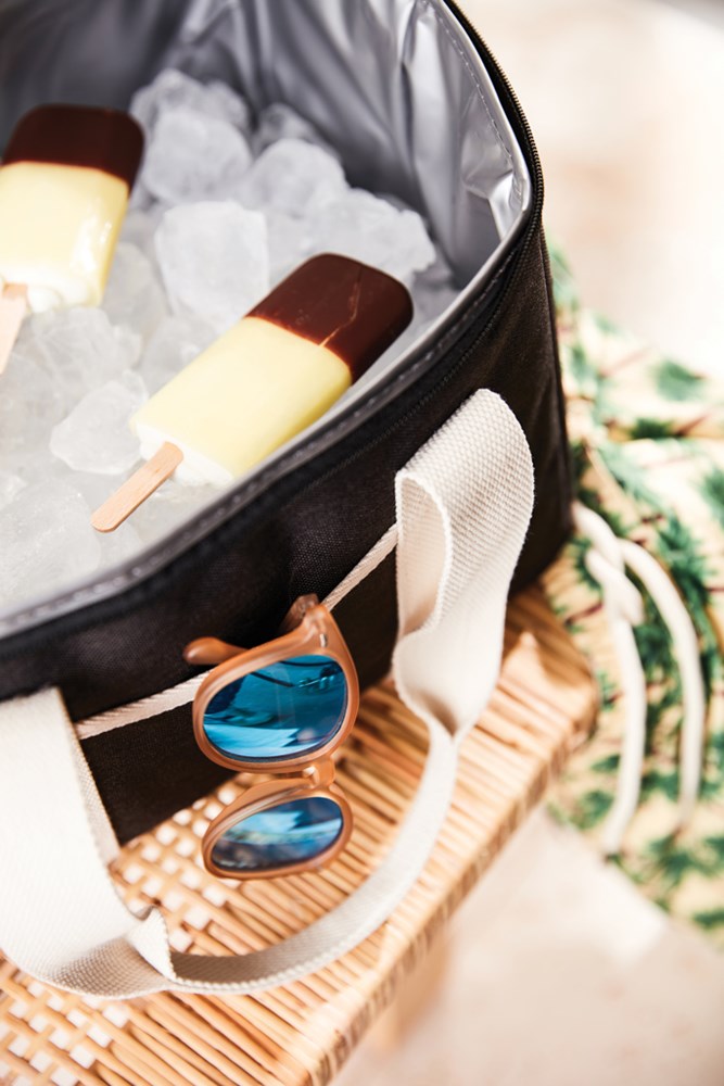 Der ultimative Kühlkorb, Ton in Ton meliert und mit Details aus Kunstleder und Baumwolle. An der... mehr