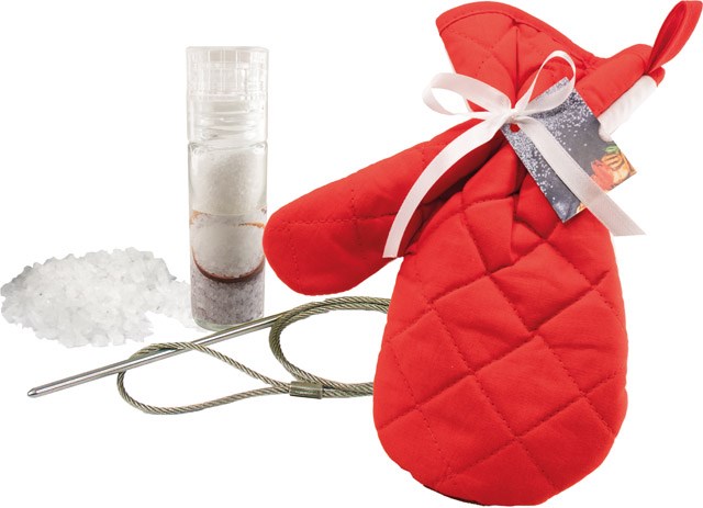 Nachhaltigkeit ist auch beim Grillen möglich. Auf unserem Edelstahl-Grilldraht lässt sich leicht Fleisch oder Gemüse zum Grillen oder für die Pfanne aufspießen. Er ist leicht zu reinigen und kann immer wieder verwendet werden. Komplettiert wird das Grillvergnügen durch die Mühle mit Meersalz, die sich ebenfalls im vielseitig verwendbaren Handschuh befindet. Ab 250 Stück kann die Karte im Standardmotiv mit einem Werbeeindruck oder auch vollständig individuell gestaltet werden. Inhalt: Grilldraht, Gewürzmühle, ca. 30 g Meersalz