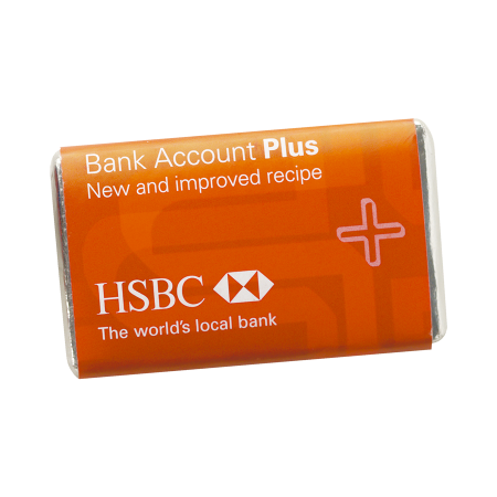 Schokotäfelchen 10,5 gr., aus dunkelschokolade Barry Callebaut, mit 4c-Druck auf Wickel. Ein ganz persönliches Dankeschön !