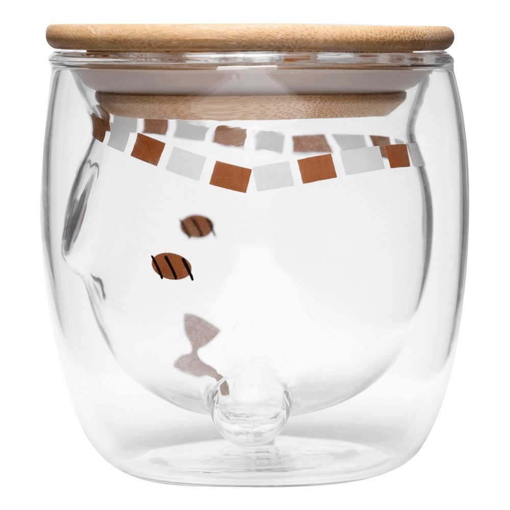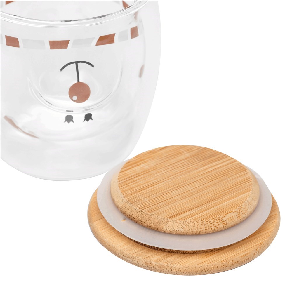 Glas XMAS BEAR, doppelwandig: Bambusdeckel mit Silikon-Dichtring, transparent, temperaturbeständig, Bärengesichtsform mit brauner Nase und Schal, Füllmenge ca. 250 ml