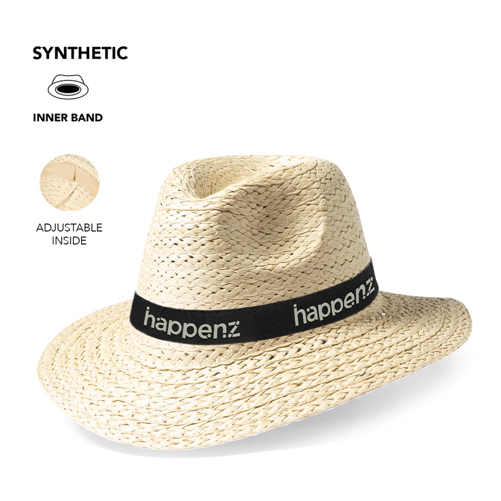 Hochwertiger Hut aus synthetischem Material und naturbelassenem Finish. Von innen verstellbar und passend mit einem bequemen Innengurt.