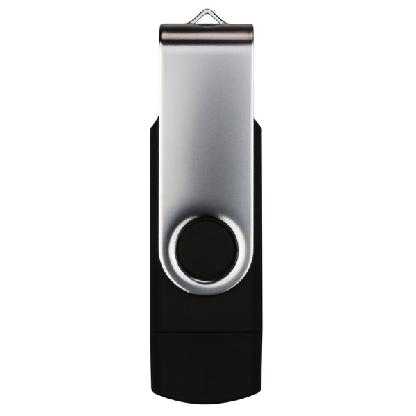 Praktischer on-the-go Speicher-Stick mit USB-A und Type-C Anschluss. Für alle modernen Smartphones, Computer oder Tablets. Der robuste Metall-Drehbügel mit Aufhängungsmöglichkeit für den Schlüsselanhänger ermöglicht ein simples Öffnen bzw. Abdecken. Mit Kapazität nach Wunsch zwischen 8 und 64 GB, in vier verschiedenen Standardfarben und gegen Aufpreis schon ab 100 Stück in Sonderfarbe erhältlich.