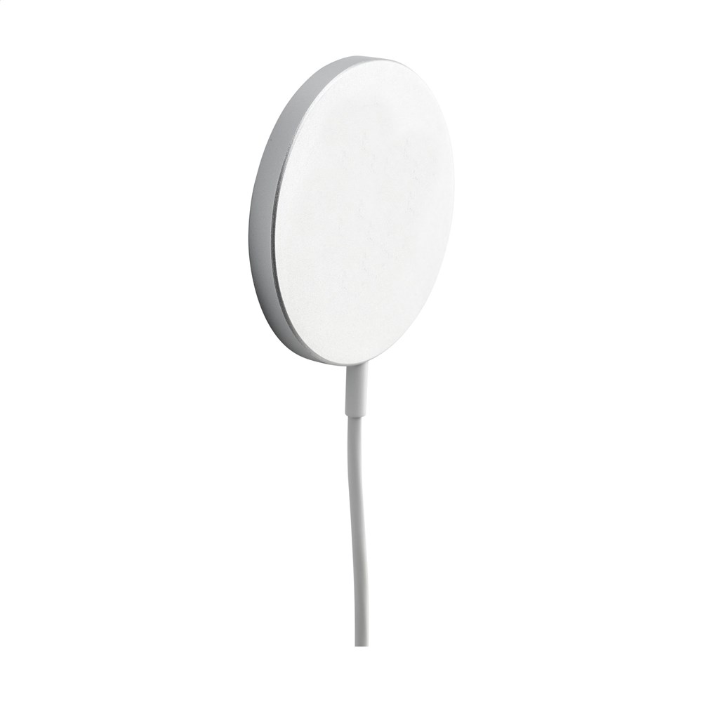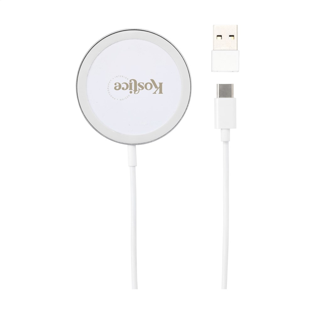 Magnetisches 10-W-Ladegerät mit einem Gehäuse aus recyceltem ABS. Mit diesem Ladegerät laden Sie Ihr Smartphone kabellos auf. Da sich im Inneren ein Magnet befindet, bleibt Ihr Telefon auch dann mit ihm verbunden, wenn Sie es verwenden. Ideal, wenn Sie Ihr mobiles Gerät aufladen, aber auch telefonieren oder ein Video ansehen möchten. Die integrierten Magnete (11 Stück hochwertiges N52H und hitzebeständig) im Ladegerät sind perfekt ausgerichtet und sorgen immer für die richtige Ladeposition auf dem Telefon. Dieses Ladegerät wird mit einem zusätzlichen magnetischen Metallring geliefert, um das Aufladen von nicht-magnetischen, kabellos aufladbaren Smartphones zu unterstützen. Kompatibel mit iPhone 12 und neueren Modellen. Ausgang: 9 V DC/1,1 A (15 W) zum schnellen Aufladen.Inklusive Ladekabel USB-C zu USB-C und Gebrauchsanweisung. Das Produkt und das Zubehör sind PVC-frei. RCS-zertifiziert. Gesamtes recyceltes Material: 30%. Wird einzeln in einem Kraftkarton geliefert.