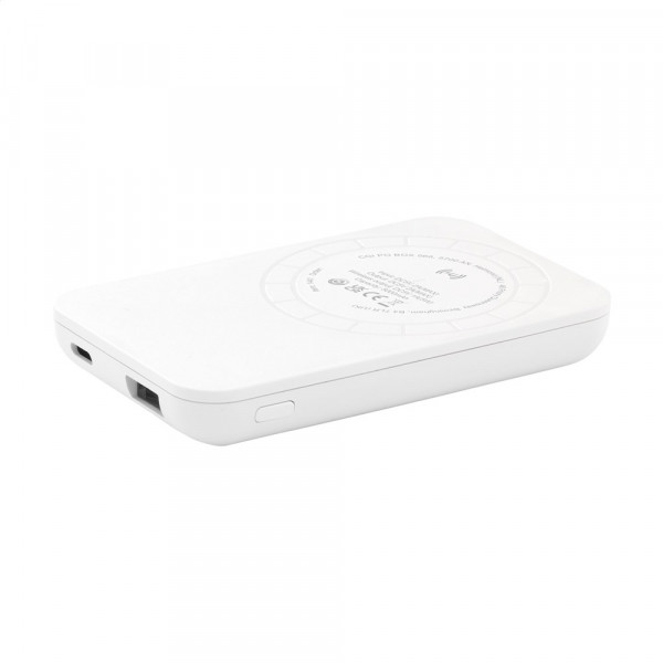 Magnetische, kabellose Powerbank aus recyceltem ABS, mit integriertem Polymer-Akku (5000 mAh). Klicken Sie das Ladegerät auf die Rückseite Ihres Mobiltelefons, um Ihr Gerät aufzuladen. Die integrierten Magnete (17 Stück hochwertiges N52H und hitzebeständig) im Ladegerät sind perfekt ausgerichtet und sorgen immer für die richtige Ladeposition auf Ihrem Telefon. Dieses Ladegerät wird mit einem zusätzlichen magnetischen Metallring geliefert, um das Aufladen von nicht-magnetischen, kabellos aufladbaren Smartphones zu unterstützen. Kompatibel mit allen mobilen Geräten, die das drahtlose QI-Laden unterstützen (Androids und iPhones der neuesten Generation ab 8 oder höher). Bei anderen Telefonen kann es als normales kabelloses Ladegerät verwendet werden. Typ-C-Eingang und -Ausgang: 5 V/2 A. USB-Ausgang: 5 V/2 A. Drahtloser Ausgang: 5 V/1 A 5 W. Inklusive Typ-C-Ladekabel und Gebrauchsanweisung. Das Produkt und das Zubehör sind PVC-frei. RCS-zertifiziert. Gesamtes recyceltes Material: 30%. Pro Stück in einer Verpackung.