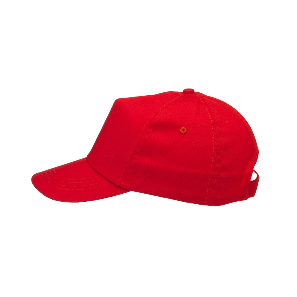 Baseballkappe aus 100% Baumwolle mit vorgeformtem Schirm und verstellbarem Verschluss.