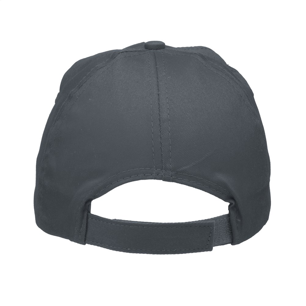 Baseballkappe aus 100% Baumwolle mit vorgeformtem Schirm und verstellbarem Verschluss.