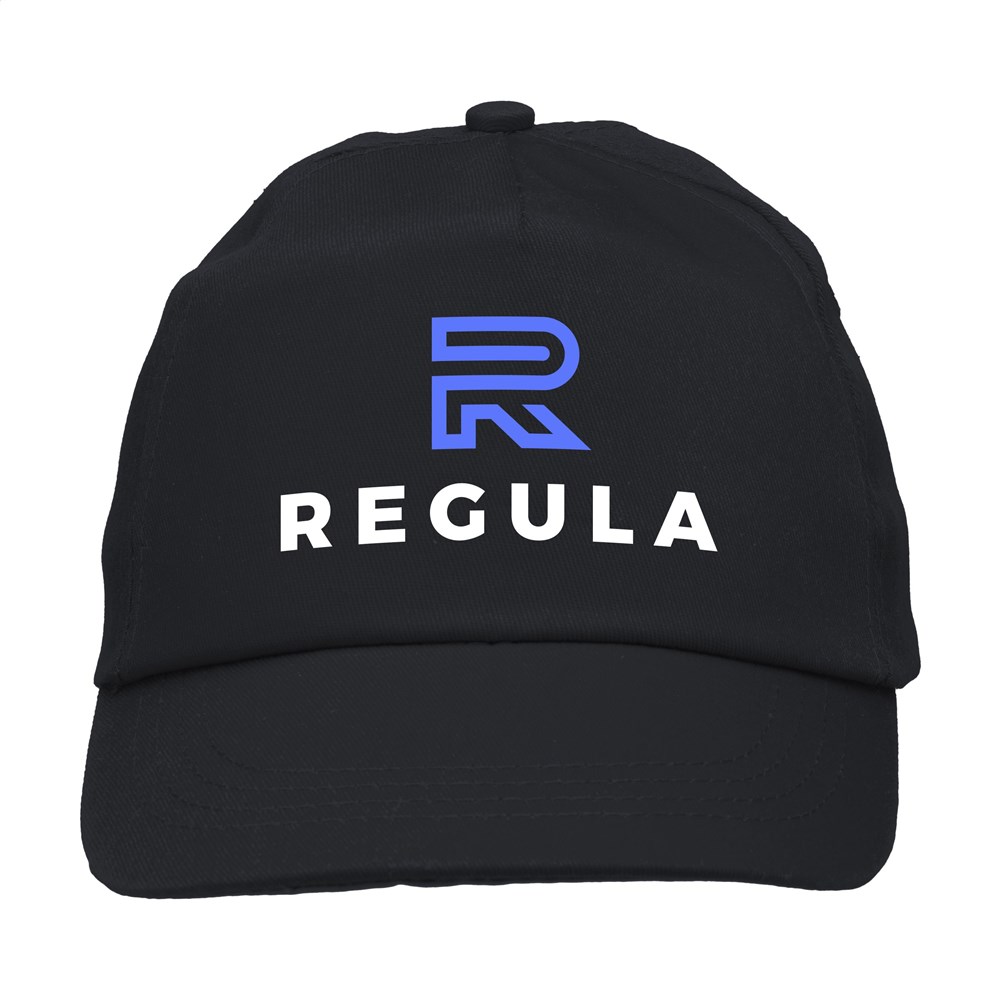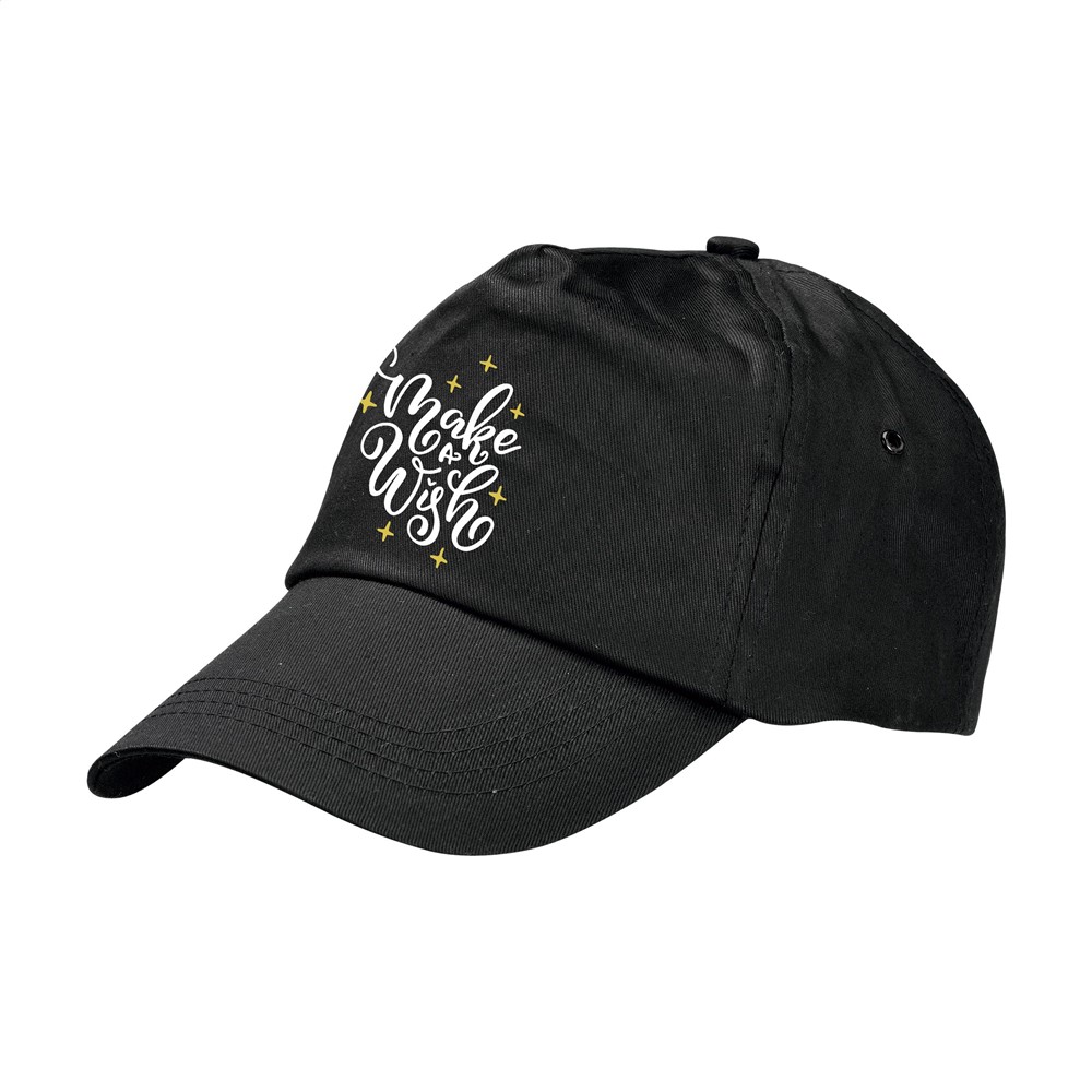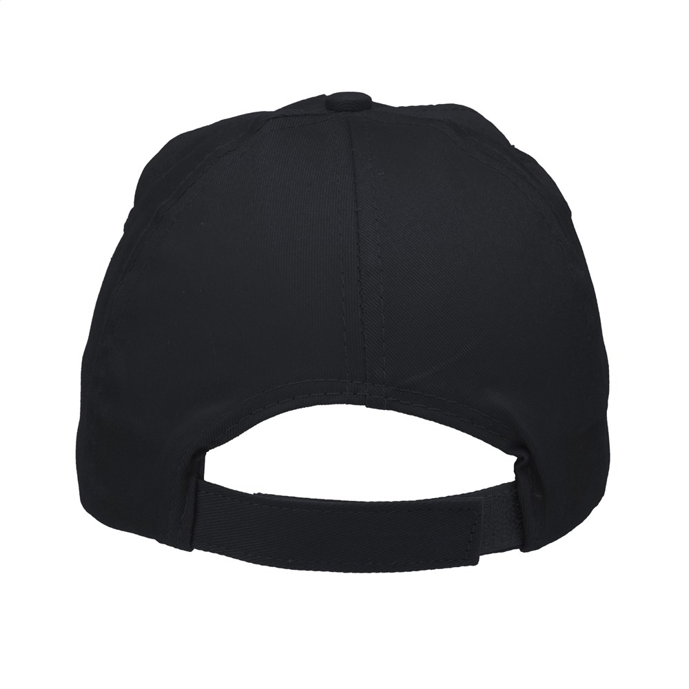 Baseballkappe aus 100% Baumwolle mit vorgeformtem Schirm und verstellbarem Verschluss.