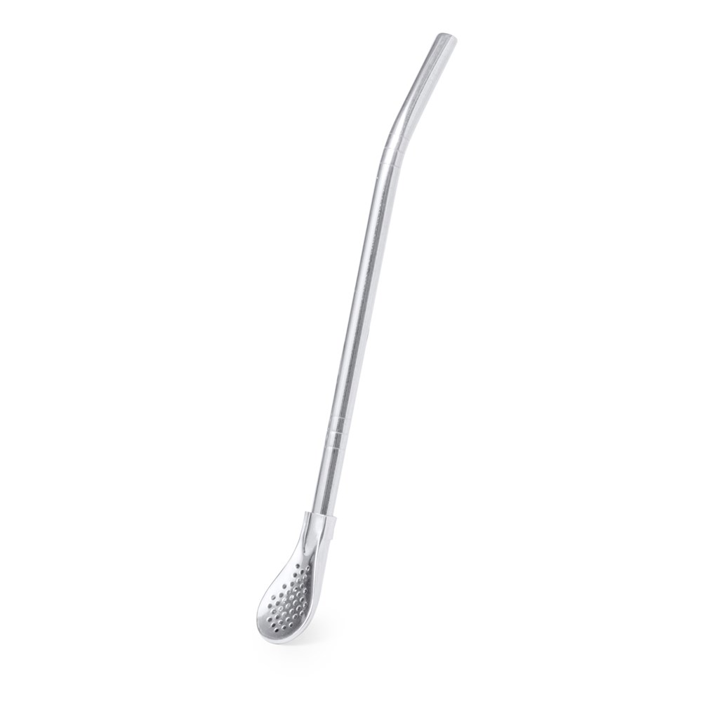 Nützlicher Rührer aus Edelstahl mit Strohhalm. Mit seinem eleganten und funktionalen Design ist dieses Accessoire unverzichtbar für heiße oder kalte Getränke. Integrierter Strohhalm zum einfachen Trinken und ein praktischer Löffel mit Filter an einem Ende. Präsentiert in einer individuellen Tasche.