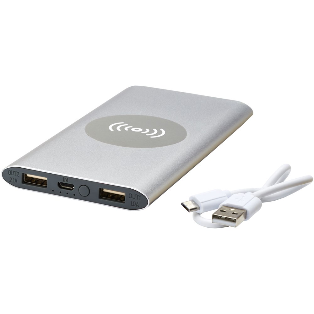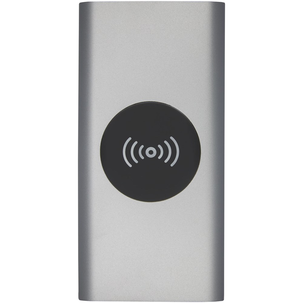 8000 mAh Powerbank mit Aluminiumgehäuse. Unterstützt kabelloses Laden mit 5 W und wird auch mit Mikro-USB-Ausgang geliefert, um das Aufladen per Kabel zu ermöglichen. Mit dem 8000 mAh Lithium-Polymer-Akku kann ein Smartphone mehrmals vollständig aufgeladen werden. Leistungsanzeige, die jederzeit den Energiepegel anzeigt. Mikro-USB-Anschluss: 5 V/2 A Ausgang: 5 V/2A. Kabelloser Ausgang 5 W. Inklusive PVC-freiem TPE Kunststoff Ladekabel. Lieferung in einer Standard-Geschenkbox.