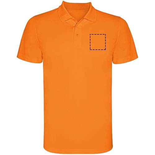 Kurzärmeliges Funktions-Poloshirt. Gestrickter Kragen mit 3-Knopfleiste. Atmungsaktives, leicht zu waschendes und zu trocknendes Material. Herausnehmbares Etikett. Technisches Gewebe. Atmungsaktiver Stoff.