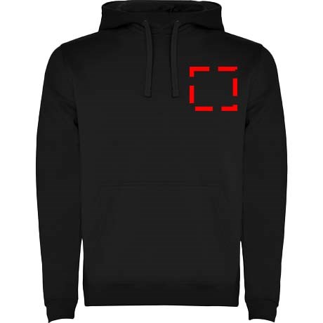 Kapuzenpullover mit doppeltem Stoff, verstellbarem Kordelzug in Kontrastfarbe, verstärkten und verdeckten Nähten am Kragen und Kängurutasche. Verfügbar in Zweifarbig und Uni. Elastischer 1×1-Rippstrick an Ärmeln und Bund. Abnehmbares Etikett. Das Modell ist 185 cm groß und trägt Größe M.