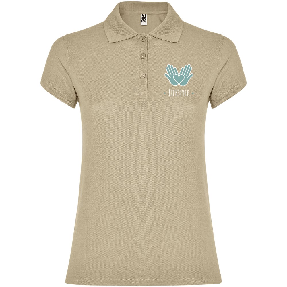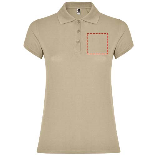 Kurzärmeliges Poloshirt für Damen. Verstärkte und verdeckte Nähte am Innenkragen. 1x1 Rippstrickbündchen an Ärmeln und Kragen. Seitennähte. 3-Knopfleiste und Seitenschlitze. Optionale Tasche. Herausnehmbares Etikett. Das Modell ist 179 cm groß und trägt Größe S.