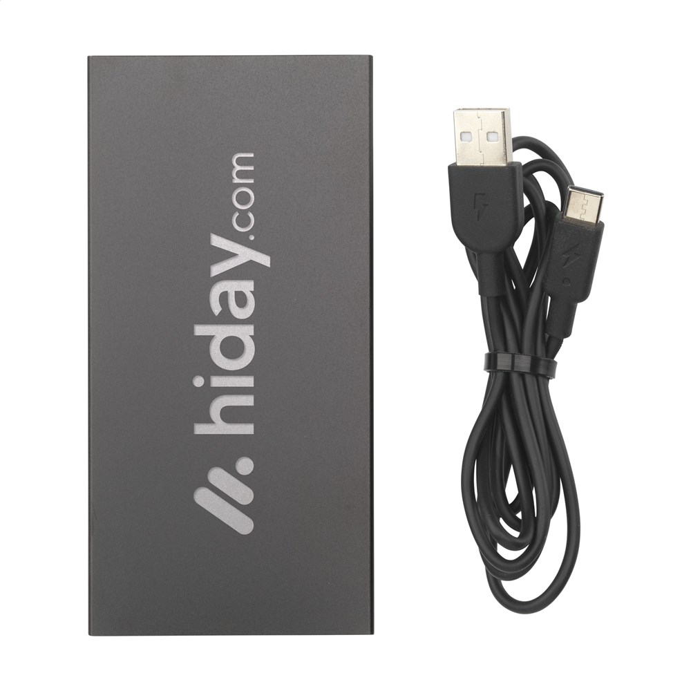 Leistungsstarke Powerbank mit integriertem Lithium-Polymer-Akku (5000 mAh). Das Gehäuse ist aus 100% GRS-zertifiziertem, recyceltem Aluminium gefertigt. Dieses Kraftpaket passt mühelos in Ihre Hosentasche, sodass Sie es bequem überallhin mitnehmen können. Eingang 5 V/2,4 A (Typ-C) Ausgang: 5V/2,4A Dual-USB. Mit Kontrollleuchten. Inklusive USB-C-Ladekabel und Gebrauchsanweisung. Gesamtes recyceltes Material: 36%. Durch die Verwendung von recyceltem Aluminium werden bei der Herstellung dieses Produkts weniger neue Rohstoffe verwendet. Das bedeutet weniger Energieverbrauch und weniger Wasserverbrauch. Eine verantwortungsvolle Wahl. Pro Stück in einer Verpackung.