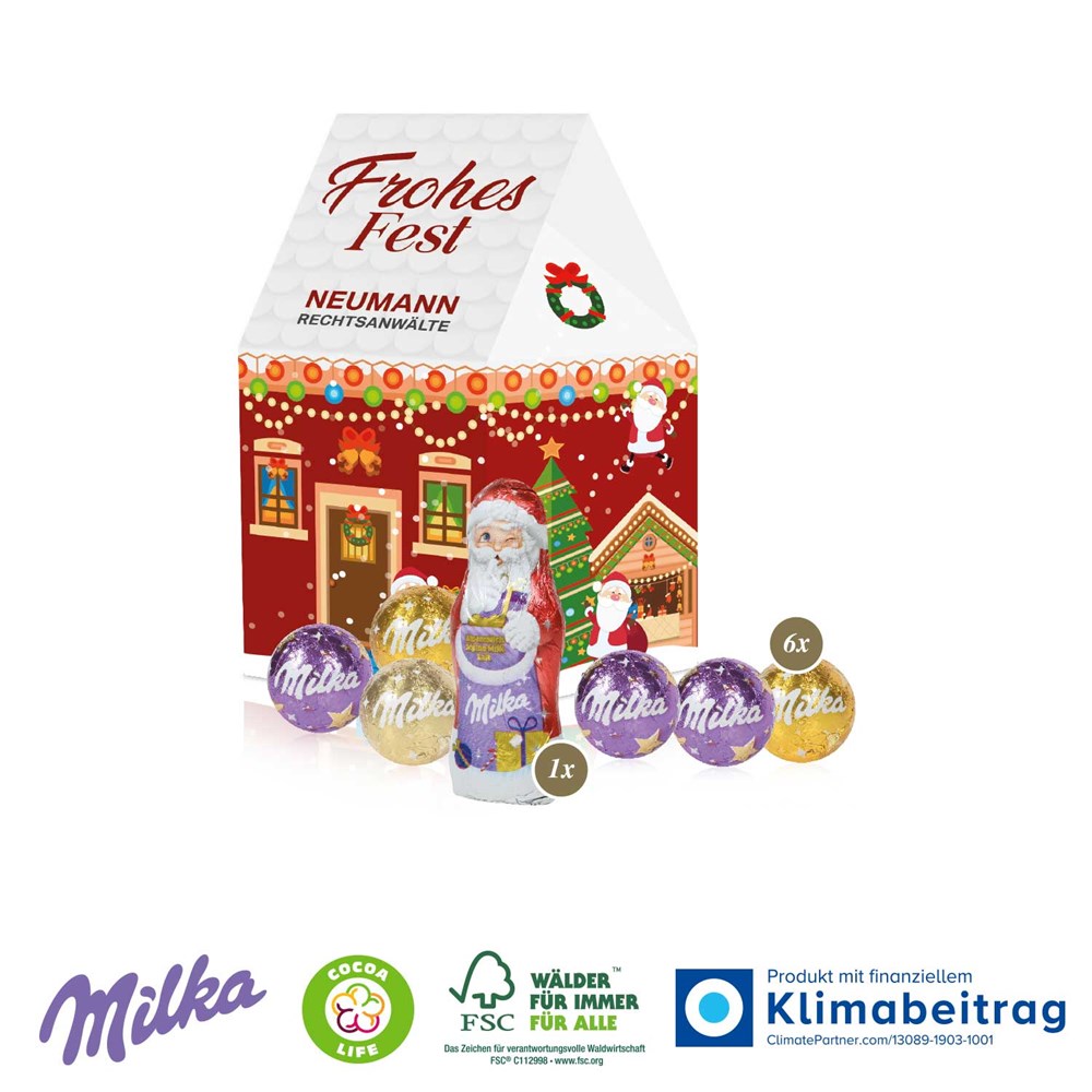 Ideales Weihnachtspräsent mit eigenem Motiv! Die auffälligen 3D Präsente „Weihnachtshaus“, „Bus“ oder „Container“ sind als individuelles Weihnachtspräsent für Kunden und Mitarbeiter schwer beliebt. Rundum nach Ihren Wünschen bedruckbar und mit feiner Markenschokolade befüllt, sind diese ein echtes Highlight. Produktdetails: Individuelle Präsentverpackung aus hochwertiger Kartonage mit süßer Füllung. Gleich mitbestellen: Einzelversandkarton für den Postversand. Nachhaltigkeit: Produkt mit finanziellem Klimabeitrag, auf FSC®-zertifiziertem Karton aus nachhaltiger Forstwirtschaft und anderen kontrollierten Quellen. Cocoa Life ist ein ganzheitliches Programm für nachhaltigen Kakao, mit dem letztendlichen Ziel, den gesamten Kakaobedarf aus nachhaltigem Anbau zu beziehen (www.cocoalife.org)
