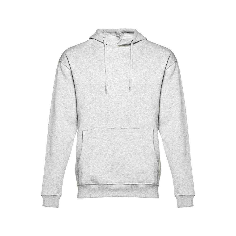 Sweatshirt aus 50% Baumwolle und 50% Polyester (320g/m²), unisex mit einer Kapuze mit Kordelzug. Innen kardiert, 1x1 Ripp, Bund an Ärmel und einer Kängurutasche. Größen: XS, S, M, L, XL, XXL