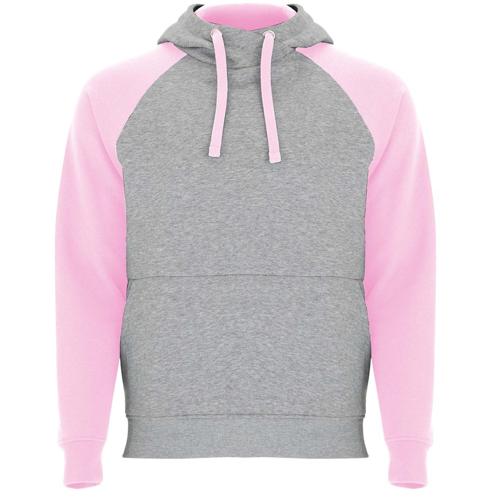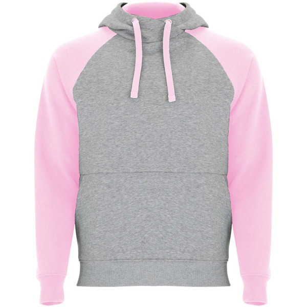 Zweifarbiger Unisex Kapuzenpulli. Kapuze mit gekreuztem Kragen und Metallösen. Innenkapuze, Kordelzug und Raglanärmel in Kontrastfarbe. Kängurutasche. Bündchen und Saum aus elastischem 1×1-Rippstrick. Abnehmbares Etikett.