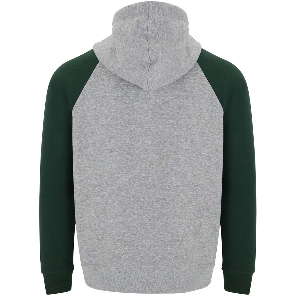 Zweifarbiger Unisex Kapuzenpulli. Kapuze mit gekreuztem Kragen und Metallösen. Innenkapuze, Kordelzug und Raglanärmel in Kontrastfarbe. Kängurutasche. Bündchen und Saum aus elastischem 1×1-Rippstrick. Abnehmbares Etikett.