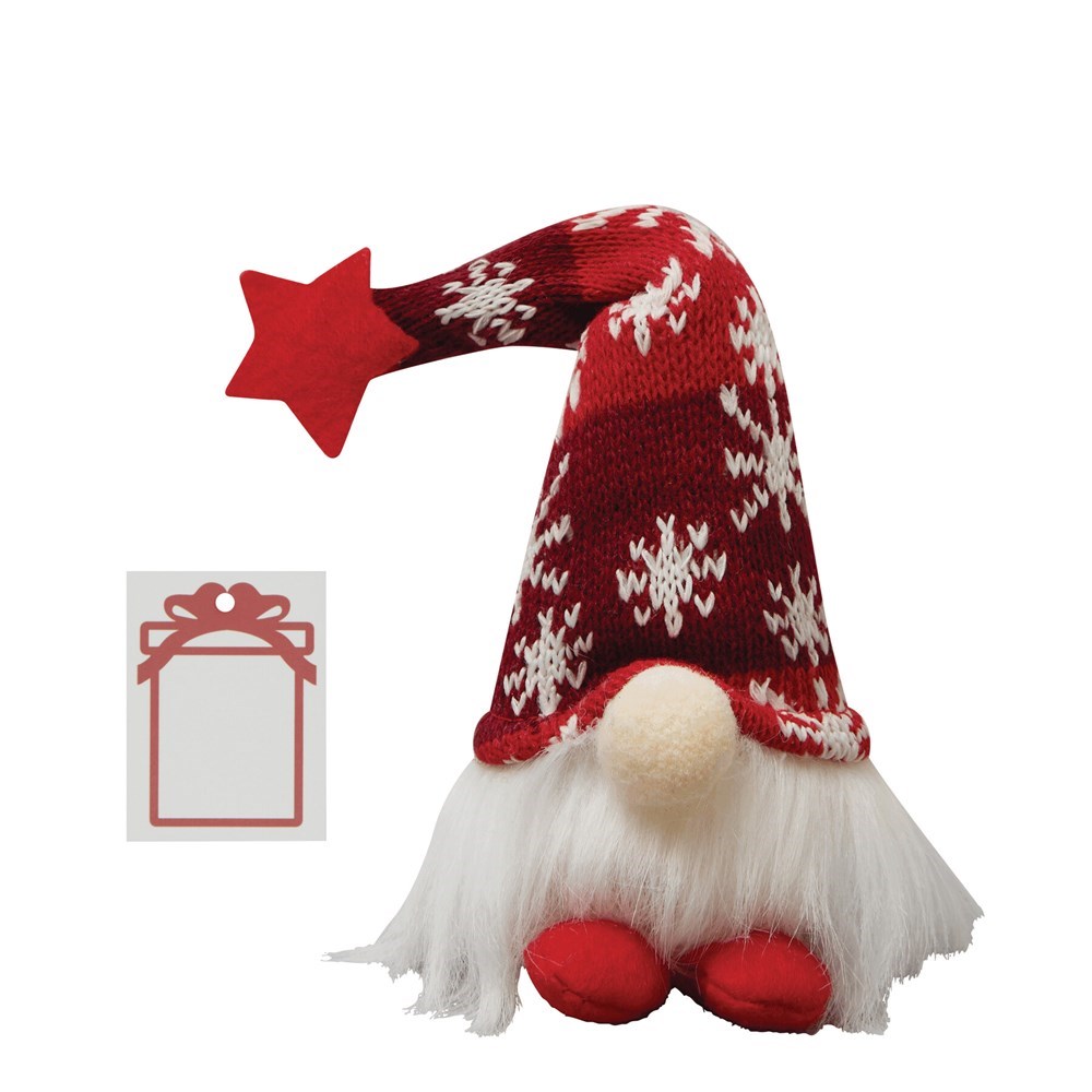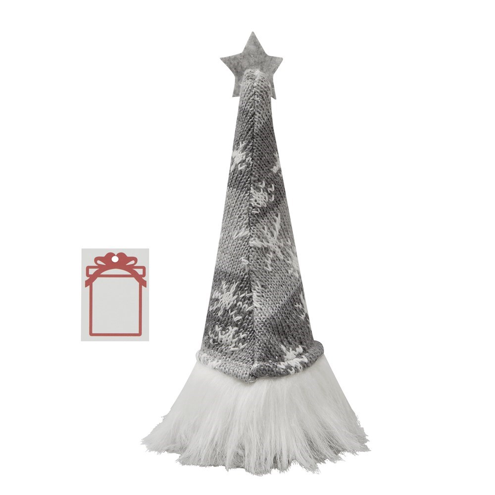 Weihnachts-Wichtel EMIL, mit Licht: Woll-Zipfelmütze, Mütze lässt sich durch integrierten Draht beliebig formen, mit an- und ausschaltbarer Beleuchtung, batteriebetrieben (2x LV44 enthalten), mit Geschenketikett zum Bedrucken
