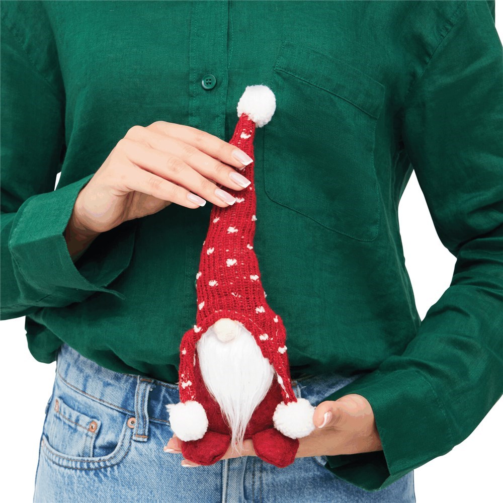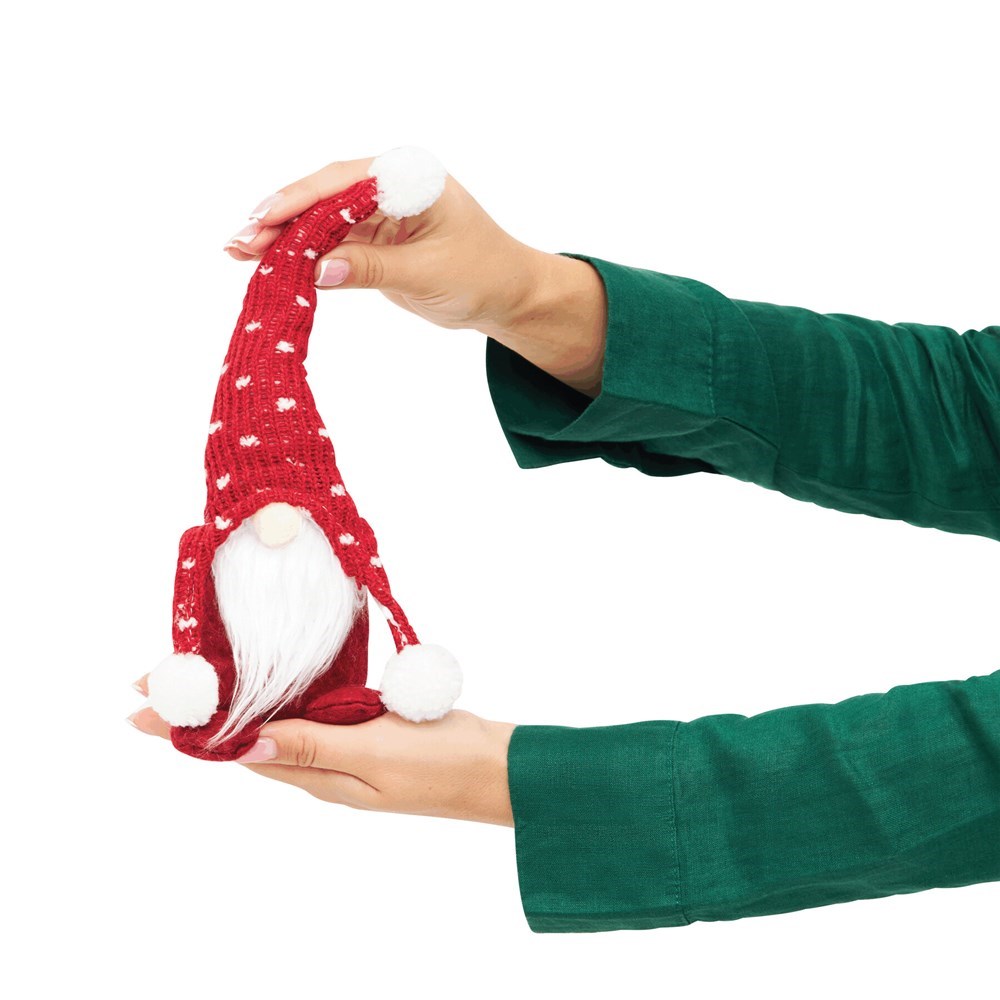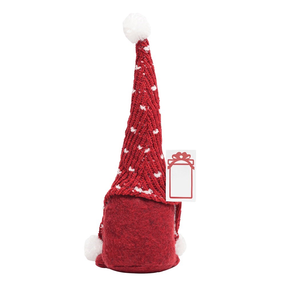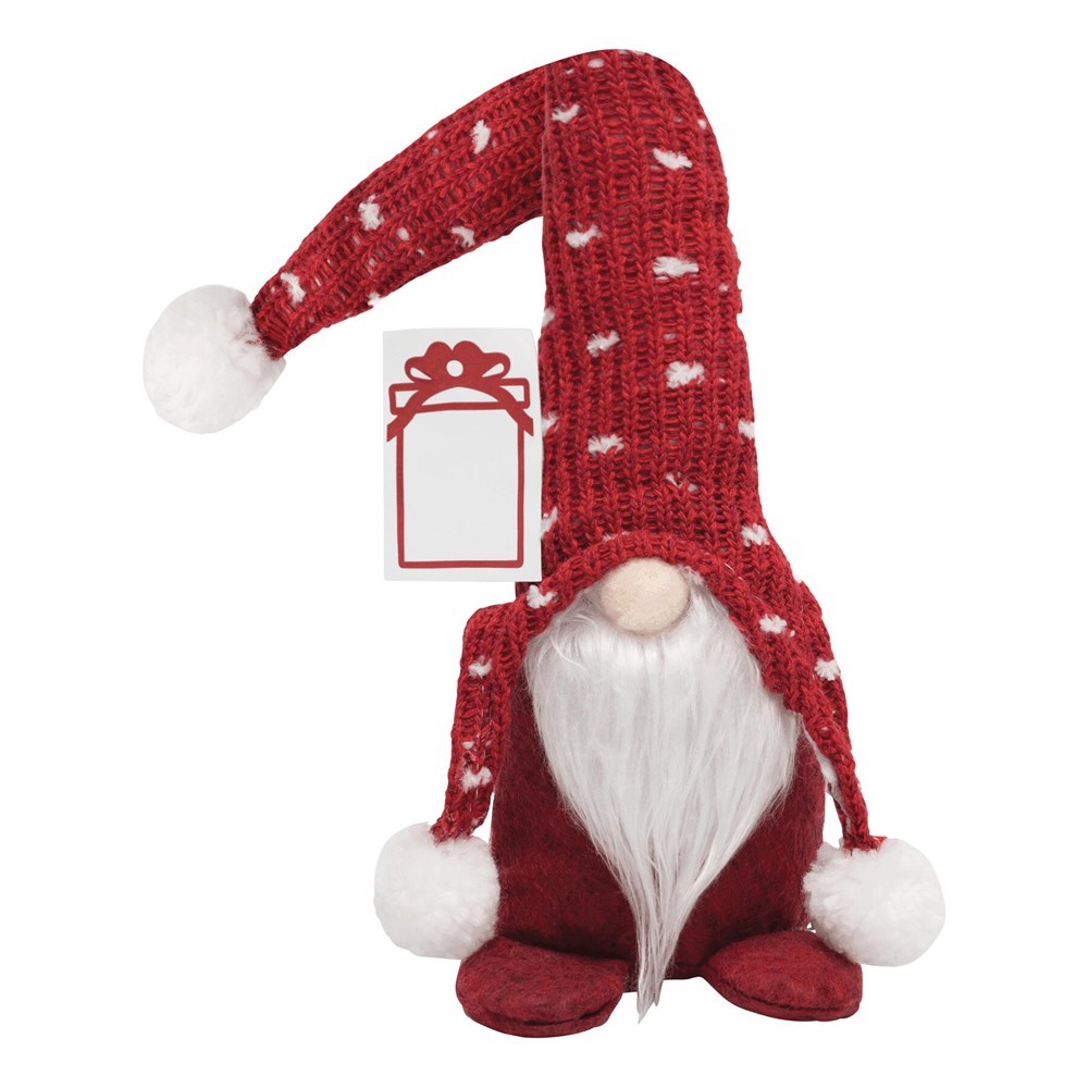 Weihnachts-Wichtel FRANZ: Woll-Zipfelmütze mit weißen Bommels, Mütze lässt sich durch integrierten Draht beliebig formen, Deko-Figur zur Beschwerung mit Kies gefüllt für einen sicheren Stand, mit Geschenkanhänger zum Bedrucken