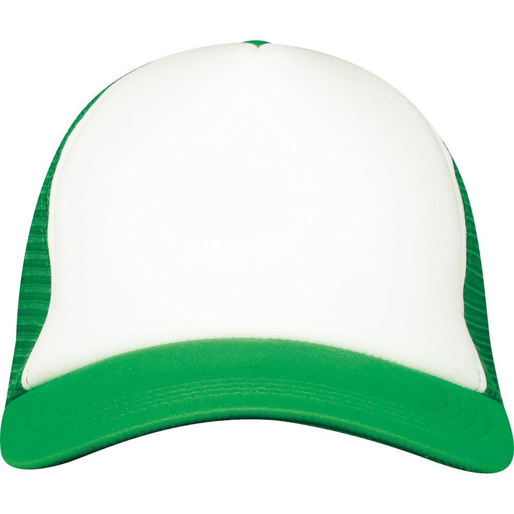 5 Panel Trucker Cap mit gepolsterter Stirnfront und verstellbaren Kunststoffverschluss am Hinterkopf. Perfekter lässiger Style für den Alltag. Ihr Logo wird auf die Stirnfront der Cap gedruckt.