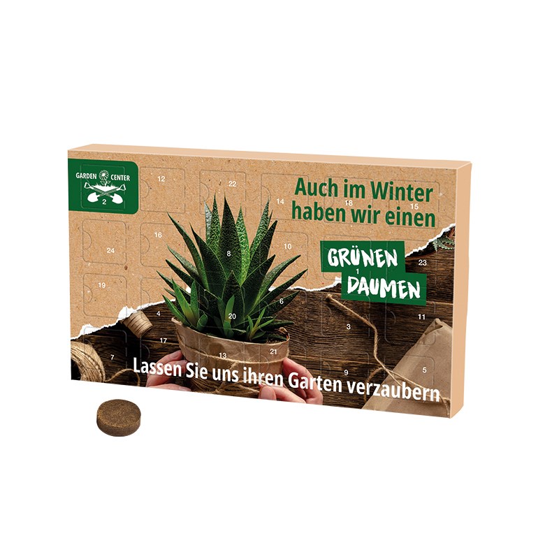 Wachsender Adventskalender Eco L, Papierblister, 24 Samentütchen & Substrattabletten