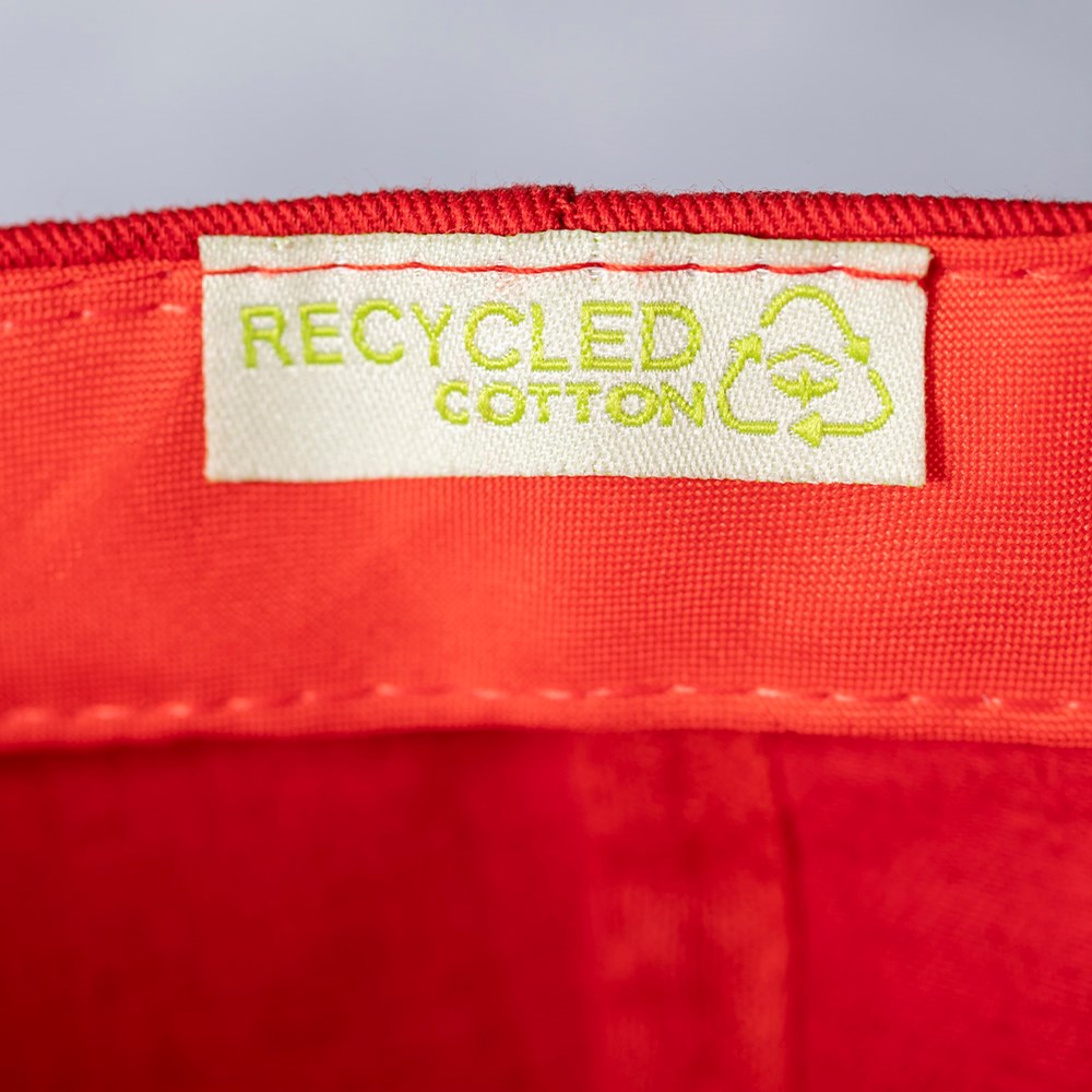 5-Panel Cap der Liene "Natur" aus einer Kombination aus recycelter Baumwolle und recyceltem Polyester. GRS-Zertifizierung (Global Recycled Standard / Global Recycling Standard), die die recycelte Herkunft des zur Herstellung des Produkts verwendeten Materials garantiert. Mit verstellbarem Klettverschluss und in vielen Farben erhältlich.