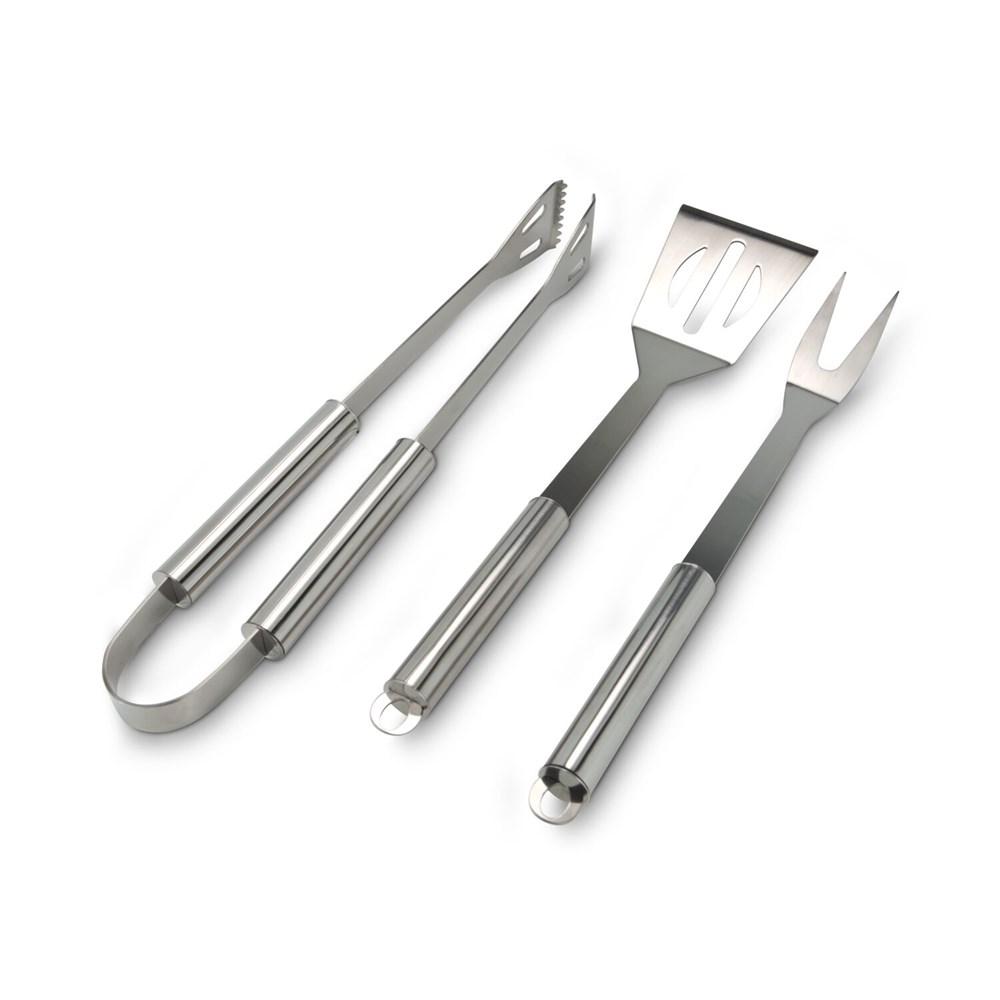 Profi-Grillausrüstung im robusten Aluminium-Geschenkkoffer, stabile Zange, praktischer Wender, edle Gabel, in klarer geradliniger Form (Edelstahl - seidenmatt gebürstet, Aluminium)