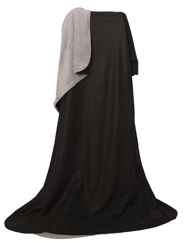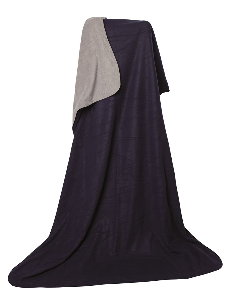 Kuschelige Wendedecke 180 x 130 cm mit einer Seite aus Fleece-Material 160 g/m² (farbige Seite) und einer Seite aus Coral-Material 190 g/m² (graue Seite)