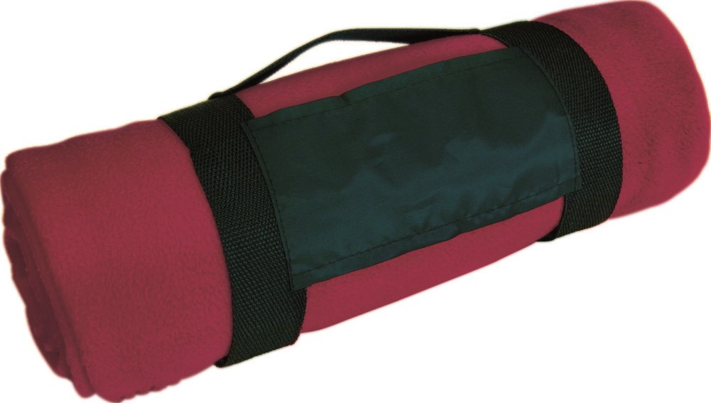 Fleece-Picknickdecke mit Nylon-Tragegurt. Die weiche Decke ist der ideale Begleiter für einen Ausflug ins Grüne zu einem Picknick