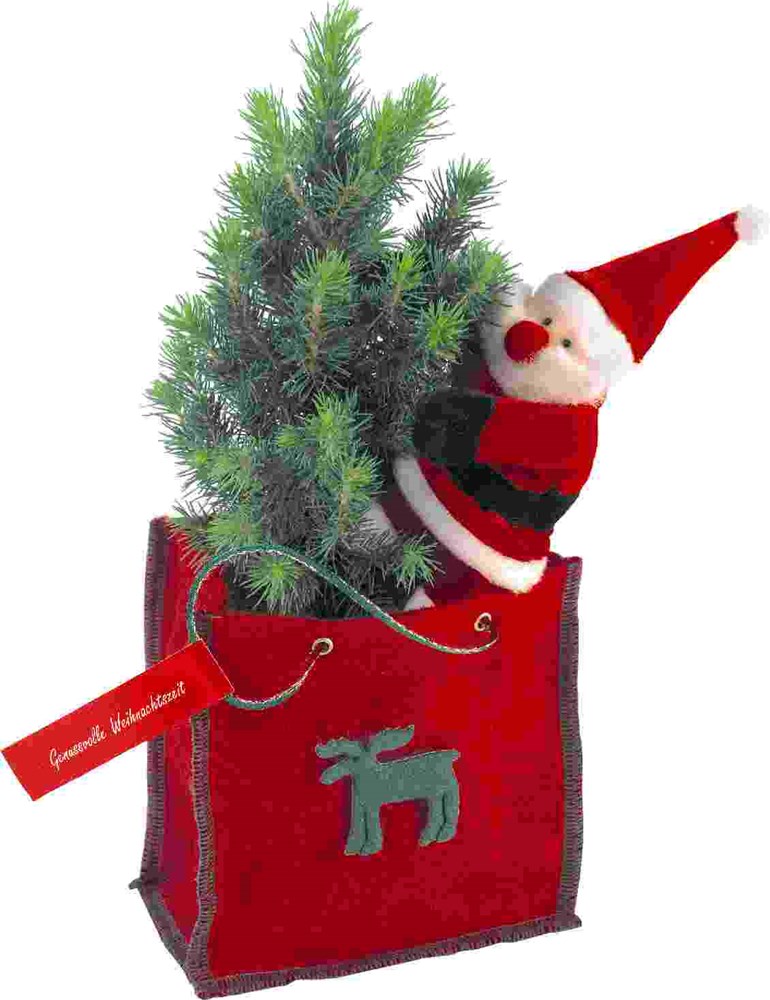 Inhalt: Bäumchen 20-30 cm, magnetischer Weihnachtsmann, Filztasche
