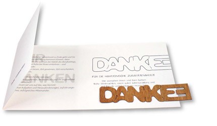 Mit dieser Weihnachtskarte können sie ganz einfach "Danke", z. B. für die harmonische Zusammenarbeit, sagen. Das Holzlesezeichen kann nachhaltig genutzt werden und ist so immer wieder präsent. Eigene Schriftzüge sind nach Vorlage ab 250 Stück möglich. Ein Kuvert ist separat erhältlich Art. 6101. Platz für den Werbedruck ist auf dem Standardmotiv der Karte oder eine eigene Gestaltung, jeweils ab 250 Stück. Ein Kuvert ist separat erhältlich, Artikel 6101
