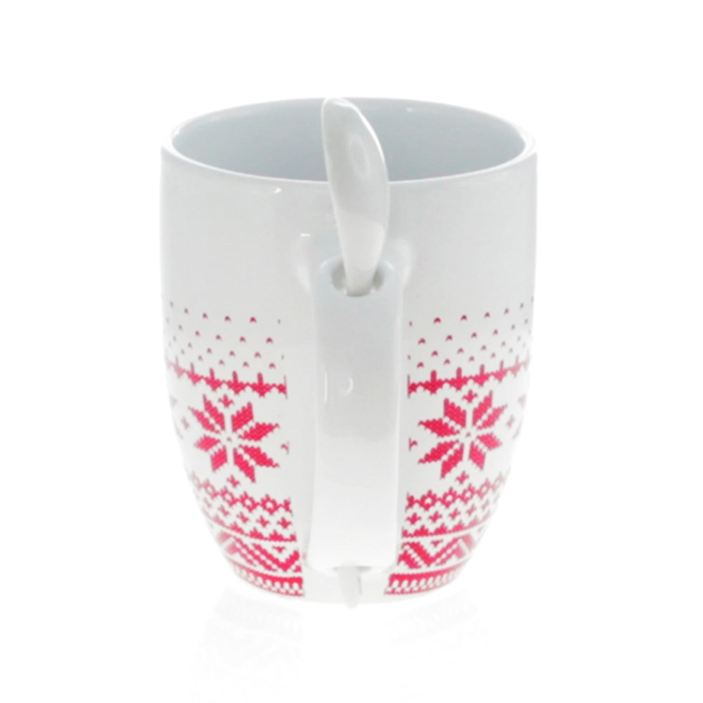 Keramiktasse mit 370 ml Fassungsvermögen in Weiß mit winterlichem Design auf der Außenseite. Mit integriertem Keramiklöffel in passender Farbe im Henkel. Präsentiert in einer individuellen Box.