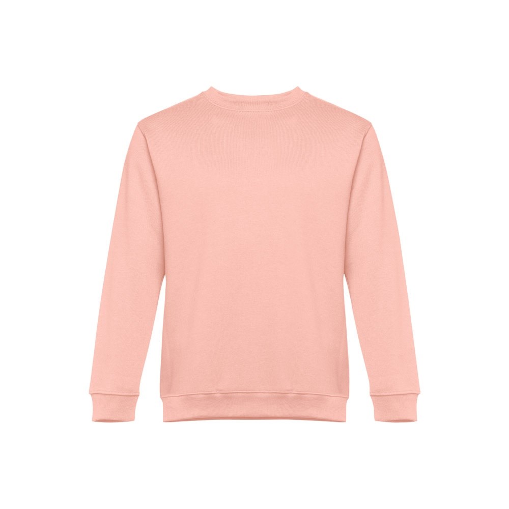 Sweatshirt aus 50% Baumwolle und 50% Polyester (300g/m²), unisex. Innen kardiert, 1x1 Ripp, Bund am Ärmel und Saum, Doppelnaht und Verstärkungsband am Kragen. Größen: S, M, L, XL, XXL