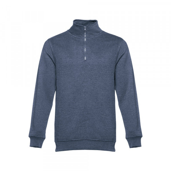 Sweatshirt aus 50% Baumwolle und 50% Polyester (320g/m²). Kardiert mit einem farbig abgestimmten Reißverschluss (1/4) und gerriptem Bund. Größen: S, M, L, XL, XXL