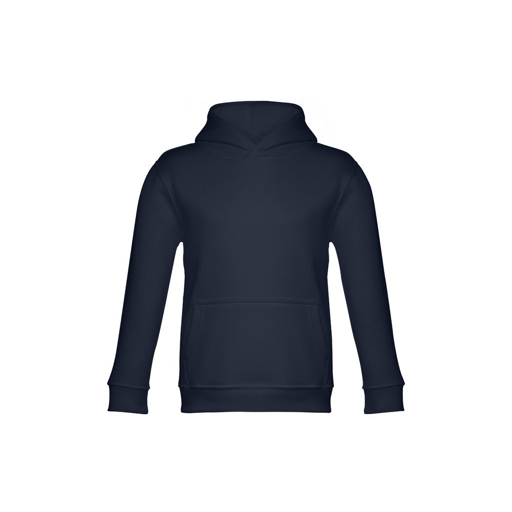 Kinder Sweatshirt aus 50% Baumwolle und 50% Polyester (320g/m²), unisex mit Kapuze in Jersey. Innen kardiert, Ripp 1x1 an Ärmelbündchen und Bund und einer Kängurutasche. Kapuze in Übereinstimmung mit den Sicherheitsstandards der Europäischen Union. Größen: 2, 4, 6, 8, 10, 12