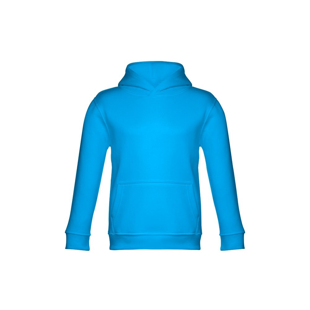 Kinder Sweatshirt aus 50% Baumwolle und 50% Polyester (320g/m²), unisex mit Kapuze in Jersey. Innen kardiert, Ripp 1x1 an Ärmelbündchen und Bund und einer Kängurutasche. Kapuze in Übereinstimmung mit den Sicherheitsstandards der Europäischen Union. Größen: 2, 4, 6, 8, 10, 12