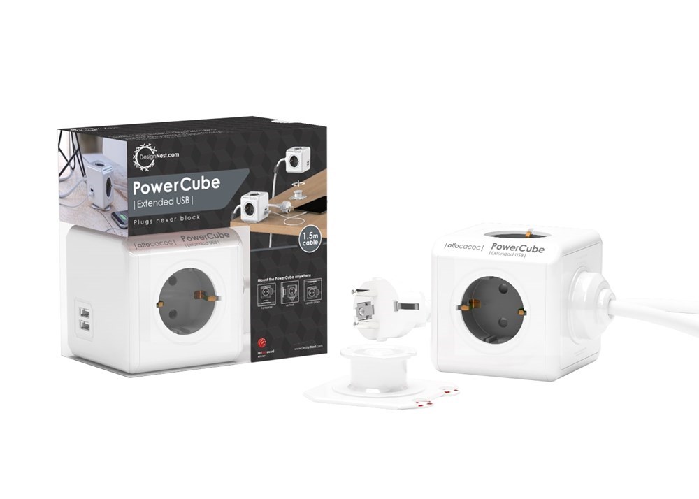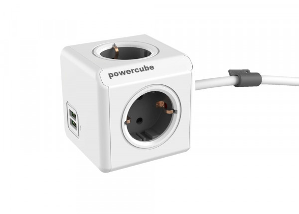 Der PowerCube Extended Duo USB ist eine elegante Mehrfachbuchse mit 4 integrierten Buchsen, 2 USB-Anschlüssen und einem stabilen Stromkabel mit einer Länge von 1,5 Metern. Die USB-Anschlüsse bieten die Möglichkeit, Mobiltelefone, Tablets, GPS, Kameras, MP3-Player und ähnliche Geräte schnell und einfach aufzuladen. Die Ladezeit des Akkus ist viel kürzer als beim Laden mit einem PC oder Laptop. Dank der kompakten und innovativen Würfelform können sich die einzelnen Stecker und Adapter niemals gegenseitig stören.