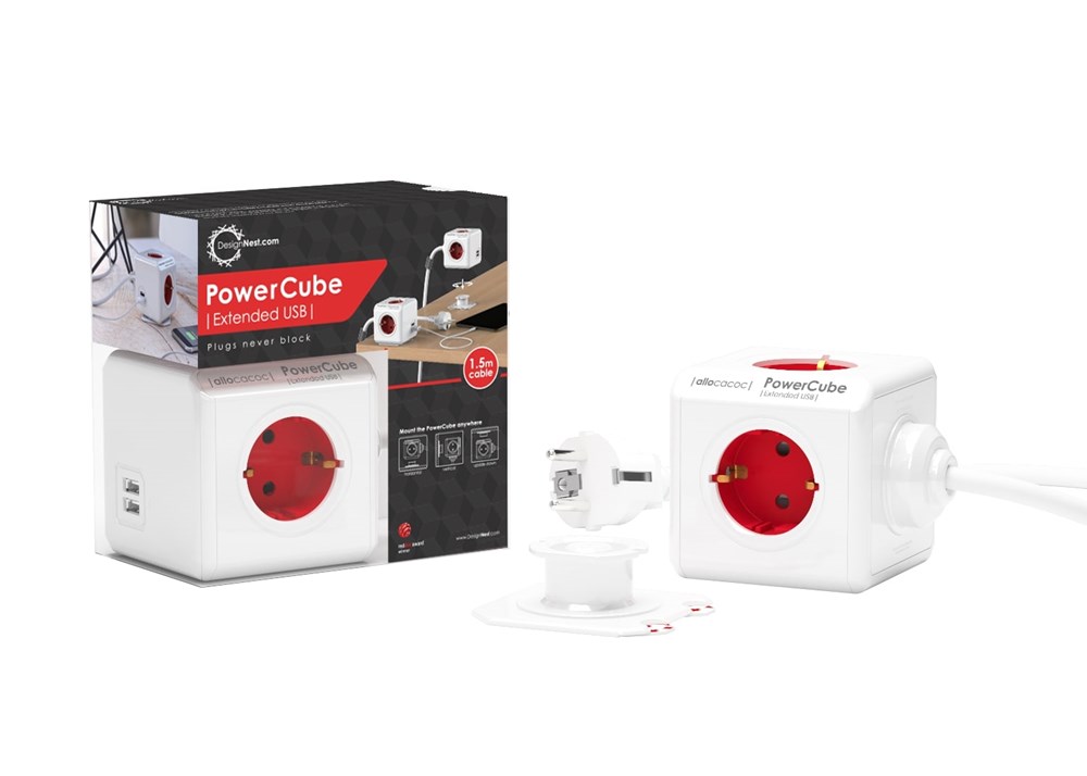 Der PowerCube Extended Duo USB ist eine elegante Mehrfachbuchse mit 4 integrierten Buchsen, 2 USB-Anschlüssen und einem stabilen Stromkabel mit einer Länge von 1,5 Metern. Die USB-Anschlüsse bieten die Möglichkeit, Mobiltelefone, Tablets, GPS, Kameras, MP3-Player und ähnliche Geräte schnell und einfach aufzuladen. Die Ladezeit des Akkus ist viel kürzer als beim Laden mit einem PC oder Laptop. Dank der kompakten und innovativen Würfelform können sich die einzelnen Stecker und Adapter niemals gegenseitig stören.