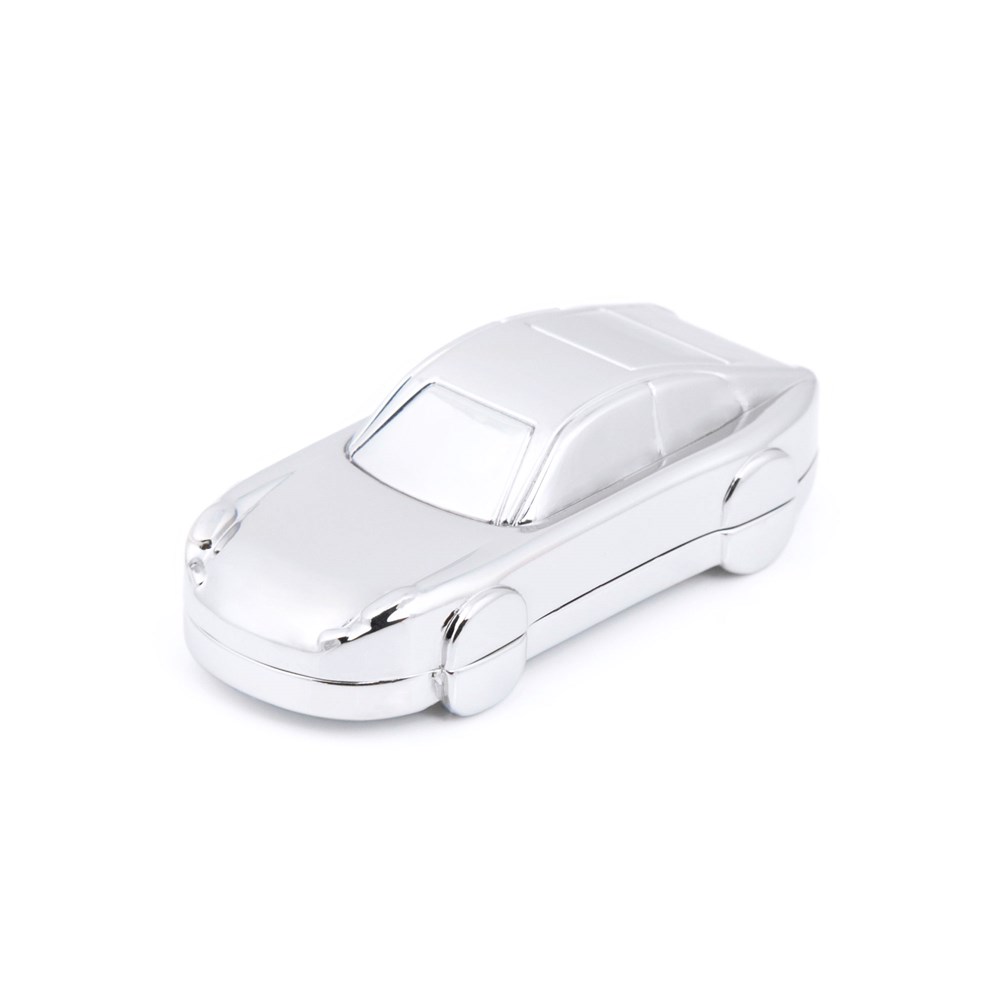 Unser USB Stick Auto hat ein auffallendes Design in der Form eines Sportwagens. Er sticht jedem Autoliebhaber garantiert ins Auge. Sein Gehäuse ist verchromt was ihm eine hochwertige Optik verleiht. Der USB Stick Auto hat eine glatte Oberfläche und fühlt sich gut an. Die USB Schnittstelle befindet sich im Inneren des USB Stick Auto und lässt sich einfach mit Hilfe eines kleinen Schiebers auf der Unterseite herausschieben.